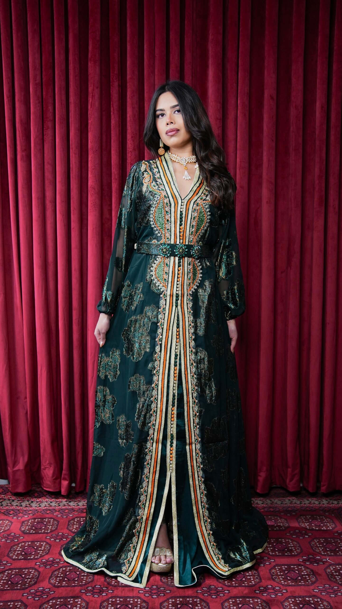 قفطان اخضر مطرز
