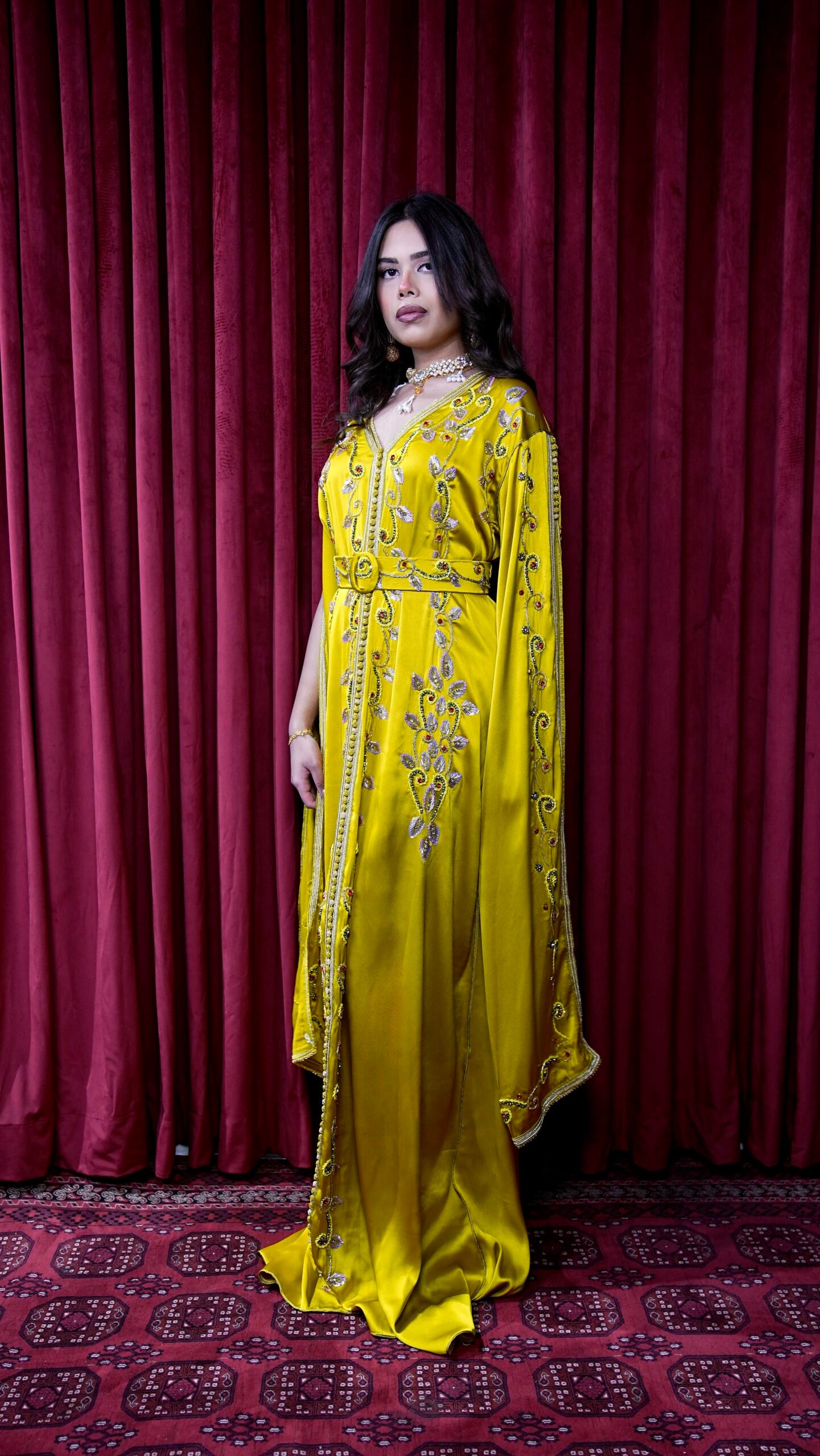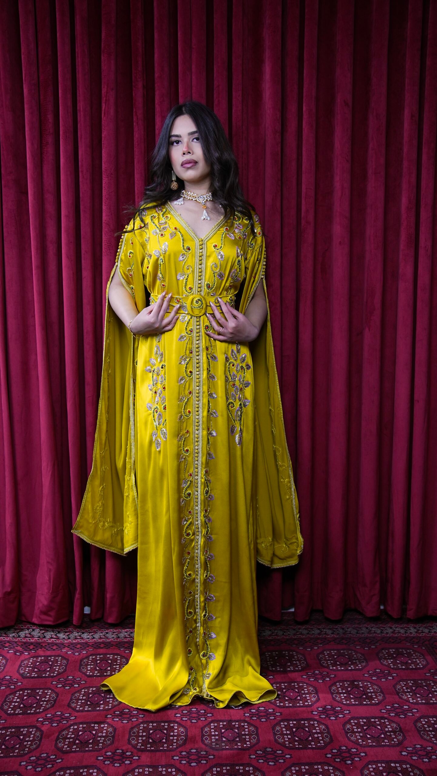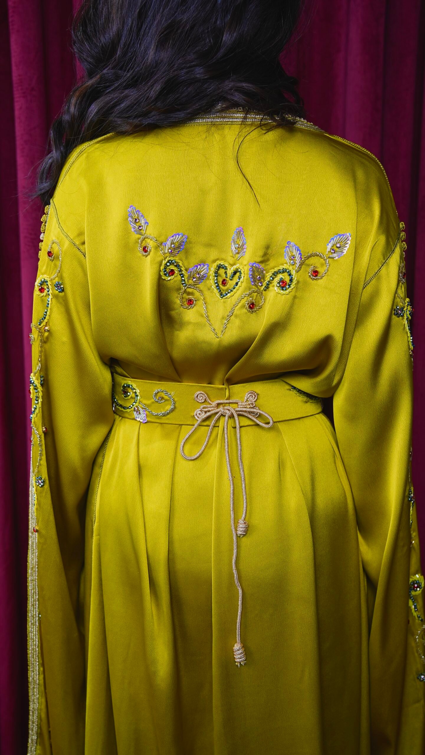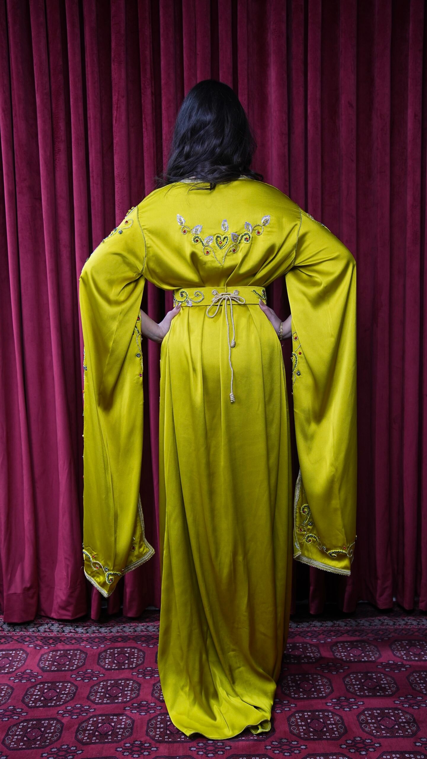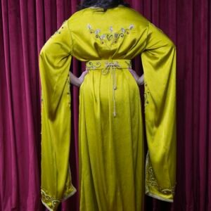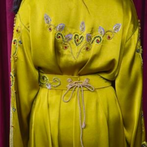 قفطان ليموني مطرز بأكمام طويلة