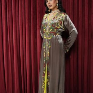 قفطان قطعتين رمادي مع ليموني مطرز