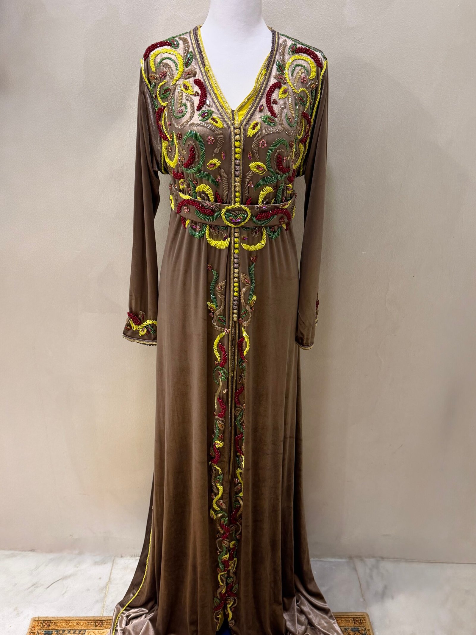 ⁦Taupe/lime kaftan⁩ - الصورة ⁦4⁩